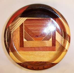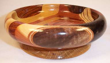 right: a walnut crotch backed by a lamination of 1/12" mahogany veneer and hard maple veneer and to the left of that a piece of aromatic red cedar with sapwood
