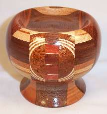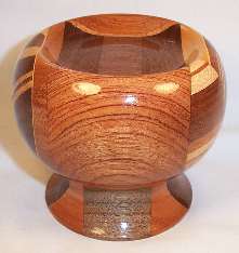 in the left pic, the vertical lamination is walnut, hard maple veneer, and padauk. The oval lamination is Honduran mahogany and hard maple