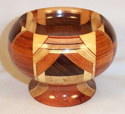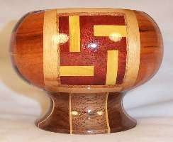 AAAIIIIIEEEEEE !!! A swastika. A SWASTIKA ??!!?? I know it's just about impossible to believe, but when I was gluing this up, I didn't realize I was doing a swastika, I just though I was making an interesting design out of bloodwood and osage orange. The reddish brown wedges on the left and right are goncalo alves.