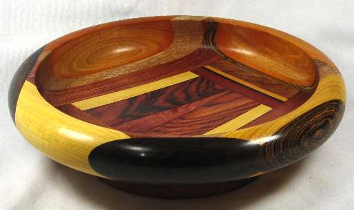 two pieces of paela --- the one on the left is fronted by shedua (see below) and the one on the right is fronted by bocote. The base is mahogany.
