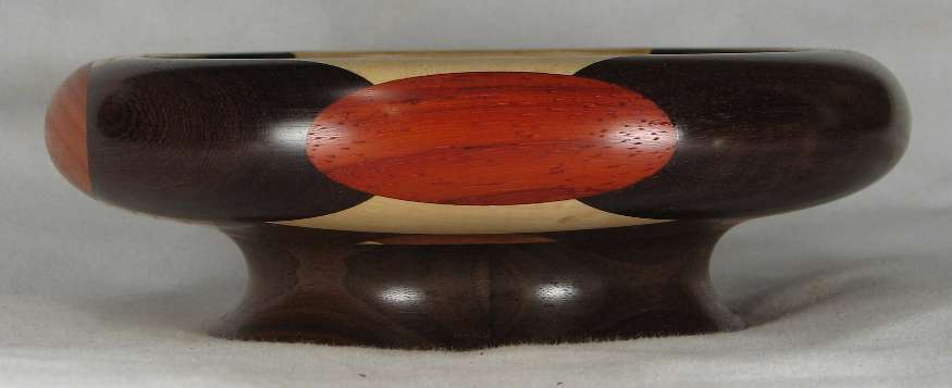 all of the dark wood on the rim of this bowl is partridgewood --- up close it DOES show a grain pattern; it's not pure black like ebony (the wood itself is dark brown but the finish makes it look black)