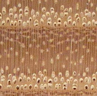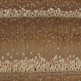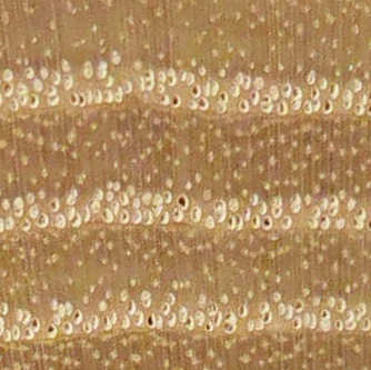 parenchyma: wavy discontinuous bands of confluent parenchyma joining the pores towards the end of the latewood (may be hard to see with a 10X loupe)