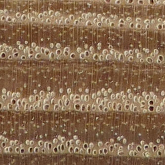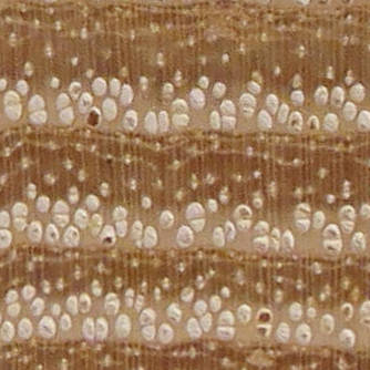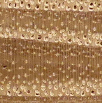 GREEN ASH / Fraxinus pennsylvanica classic ring porous look with earlywood line of pores 2 to 3 pores thick and weak wavy discontinuous bands of confluent parenchyma joining the pores at the end of the latewood