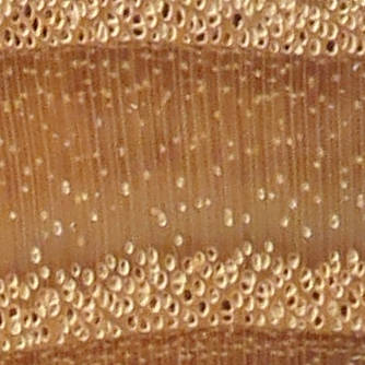VELVET ASH / Fraxinus velutina velvet ash / Fraxinus velutina shows a clear line of earlywood pores becoming smaller before changing to very small pores in the latewood and with weak but multitudinous wavy discontinuous bands of confluent parenchyma joining the pores in the latewood.