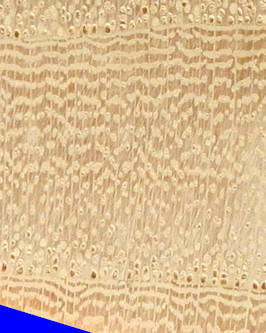 pores: clear strong line of earlywood pores, one to several pores thick but usually no more than 2, dropping off to much smaller pores in wavy bands ("Ulmiform bands") throughout the latewood