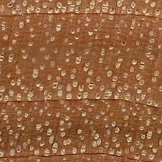 medium density, very small pores, a thin, sometimes vague, row of earlywood pores that only vary slightly in size over the course of the year's growth, growth ring demarcation is weak but generally visible to the naked eye rays are clear with a 10X loupe but not to the naked eye |