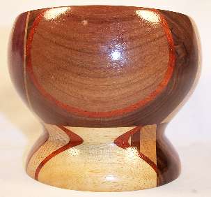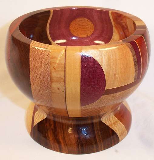 right-hand pic, from the right: African mahogany, purpleheart, 3 plys of hard maple veneer, aromatic red cedar with sapwood, hard maple, zebrawood, padauk, hard maple veneer, purpleheart. Horizontal on the left is African mahogany then two pieces of red oak. Dark wood on bottom is zircote.