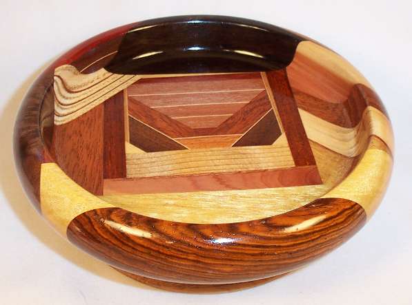 right: a walnut crotch backed by a lamination of 1/12" mahogany veneer and hard maple veneer and to the left of that a piece of aromatic red cedar with sapwood