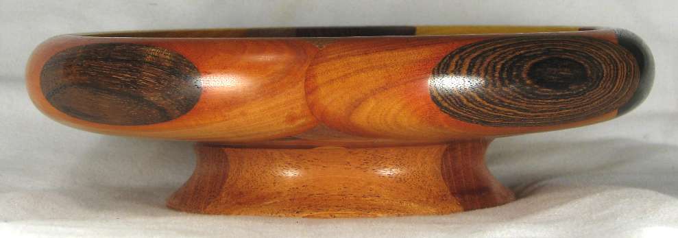 two pieces of paela --- the one on the left is fronted by shedua (see below) and the one on the right is fronted by bocote. The base is mahogany.