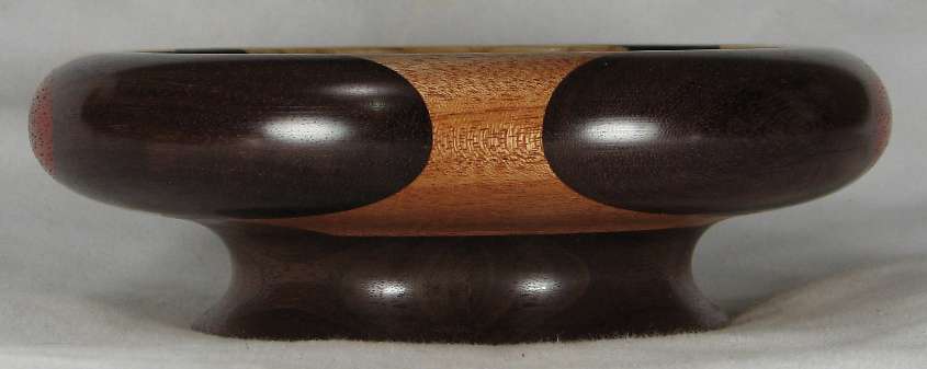 all of the dark wood on the rim of this bowl is partridgewood --- up close it DOES show a grain pattern; it's not pure black like ebony (the wood itself is dark brown but the finish makes it look black)