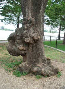 two trees with many burls on each and two bulbous burls