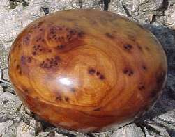 a thuya burl and a "box" (about 3" across) made from thuya burl. The burl pic can be enlarged.