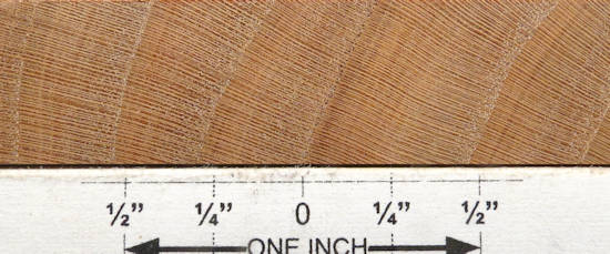 both sides of a sample plank of almond / Prunus dulcis --- HUGE enlargements are present. This sample was loaned to me by Mark Peet whom I thank for this and other contributions to the site.