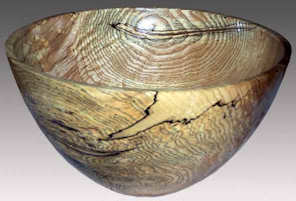 spalted ash bowl shot at a woodworking show. Finish was listed as Danish oil. HUGE enlargements are present.
