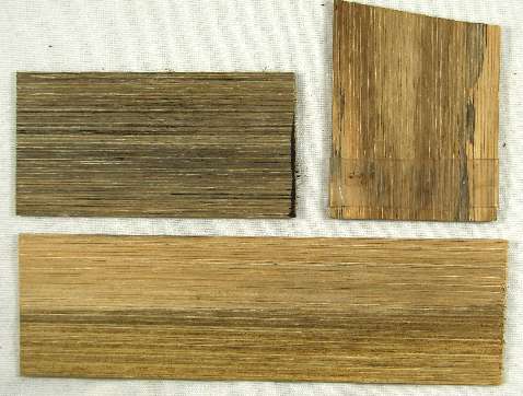 both sides of a sample plank of moso bamboo / Phyllostachys edulis --- HUGE enlargements are present. This sample was loaned to me by Mark Peet whom I thank for this and other contributions to the site.