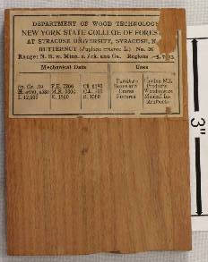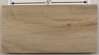| butternut / Juglans cinerea 5" x 5" flat cut, 5" x 5" quartersawn, 1" wide end grain, and a 1/4" x 1/4" end grain closeup. The fluted grain in the flat cut surface is a characteristic of butternut (although it doesn't occur in every piece) Semi ring porous with medium sized sparse pores with vasicentric parenchyma, sometimes in radial multiples of 2 or 3. Growth ring boundaries are well delineated, marginal parenchyma is usually obvious, rays are present but are generally too thin to see even at 10X. It has diffuse-in-aggregates parenchyma which frequently cannot be seen even at 10X. Tyloses presence in the pores ranges from occasional to frequent but you will not likely see it with just shop level wood processing because the pores are too small for it to show up well at 10X without much finer end grain processing than the 1200 grit I use. This is a close relative of walnut but it is generally lighter and softer than walnut and has slightly more graininess and is tan in color rather than the darker color of walnut.