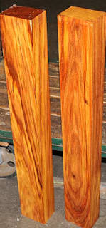 turning stock of canary / Centrolobium paraense, all from the same vendor and all shown either slathered in wax or with a digitally enhanced color