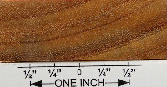 both sides of a sample plank of canary / Centrolobium spp. --- HUGE enlargements are present. This sample was loaned to me by David Clark whom I thank for this and other contributions to the site.
