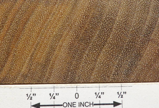 both sides of a plank and closeups of two areas on the first face (a flat cut area and a quartersawn area) --- HUGE enlargements are present.