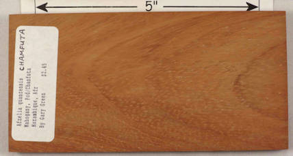 both sides of a sample plank of chanfuta (an alternate spelling) / Afzelia quanzensis