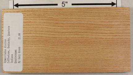 | coffee tree / Gymnocladus dioica (syn.s Gymnocladus dioicus and Gymnocladus canadensis) of the family Leuminosae, the legume or pea family 3" x 3" flat cut, 3" x 3" quartersawn, 3/4" wide end grain, and a 1/4" x 1/4" end grain closeup. Ring porous with a thick line of earlywood pores with heavy vasicentric parenchyma transitioning to small pores with some confluence towards the end of the latewood. Rays are easily visible at 10X and there are occasional pore multiples in random directions. The frequent designation "Kentucky" coffee tree would be more correctly given as "American" since it grows in several states throughout the East, Mideast, and Northeast of the USA, and in some areas of Canada. It is sometimes incorrectly designated as a mahogany. It is heavy and strong but not very hard and it is coarse grained in a way that makes it look a lot like red oak and sassafras. Reportedly, the beans of the tree CAN be used to make coffee, but only in a slightly more reasonable way than using mud to make chocolate. Coffee tree is strongly flourescent under UV, showing a yellow green much like black locust but not quite as strong.