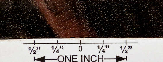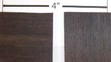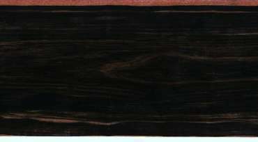 | Gaboon ebony / Diospyros spp. (most commonly Diospyros crassiflora) although frequently advertised as "Nigerian" ebony, it is my understanding that "Gaboon" is the more correct term, although some reports say that it's just a matter of giving it a country name, such as Nigeria or Gaboon and that they're all the same "African ebony" or "black ebony". 3" x 3" flat cut, 2" x 2" quartersawn, 3/4" wide end grain, and a 1/4" x 1/4" end grain closeup. Diffuse porous with small, randomly positioned pores. Growth rings are not discernible. Banded parenchyma throughout, but may be hard to see even at 10X. Rays occasionally visible at 10X. Generally, it's difficult to clean up the end grain enough at the shop level to really see the tissues clearly because the background is so dark. This is the wood that folks not familiar with wood mean when they say "ebony". It generally has areas of ink black with lighter streaks. Only a small percentage of logs produce the highest quality jet black ebony and most contain 50-70% sapwood with deep heart checks and voids. It's a very hard wood and costly to produce, which makes it a rare species to obtain. It is moderately difficult to work with some tendency to chip out and split but it glues satisfactorily, turns extremely well and takes a polish like glass. See the "Fact Sheet" for more details.
