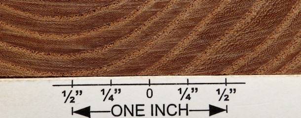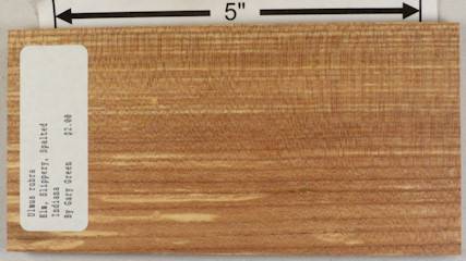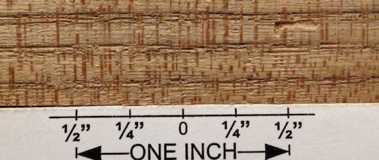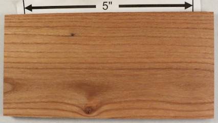 | red elm / Ulmus spp. 6" x 6" flat cut, 4" x 4" quartersawn, 1" wide end grain, and a 1/4" x 1/4" end grain closeup. Generally Ulmus rubra (syn Ulmus fulva) of the family Ulmaceae but may include other species. Ulmus rubra is also widely known as slippery elm. See "elm, misc" for more discussion of the elm species and names (which are a mess) AND to see a sample of the "feathering" that makes elm relatively easy to identify. Obvious ring porous growth rings with a few (generally 2 to 4) rows of large to smaller earlywood pores in a continuous row, giving way to large then smaller ulmiform pore groupings. Earlywood pores have vasicentric parenchyma and the ulmiform pore bands have confluent parenchyma. Thin rays are present and ray flakes on quartersawn surfaces will be multitudinous and thin/small. "Feathering" due to the ulmiform pores is generally obvious on flat cut surfaces and cathedral grain is common. |