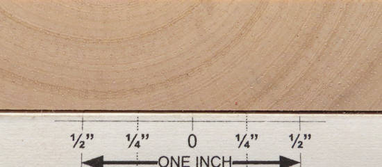 both sides of a sample plank of Florida strangler fig / Ficus aurea --- HUGE enlargements are present. This sample was loaned to me by Mark Peet whom I thank for this and other contributions to the site.