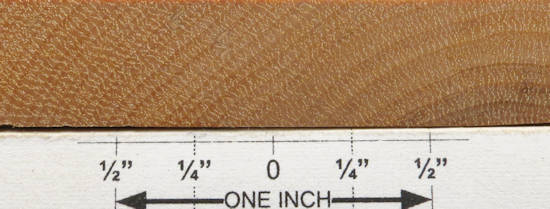 same plank as directly above but moistened with water. I had left this just sitting out in my house for about two weeks after sanding it and taking the dry pics. When I picked up the piece to moisten it for the new pics, I noticed, and you can seen this pretty well in the end grain enlargements, that it had cupped quite noticeably.