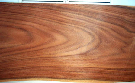 both sides of a sample plank of jacaranda / Jacaranda mimosifolia --- HUGE enlargements are present. This sample was loaned to me by David Clark whom I thank for this and other contributions to the site.