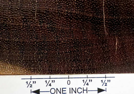 both sides of a sample plank of katalox / Swartzia cubensis --- HUGE enlargements are present. This sample was loaned to me by David Clark whom I thank for this and other contributions to the site.