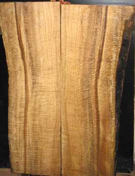 quartermatched and bookmatched veneer sheets of a lightly burled area with a lot of curl. These were listed as just "myrtle" but I'm sure they are Oregon myrtle.