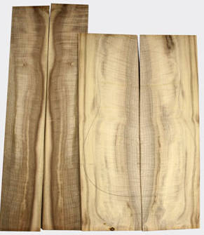 instrument fronts and backs all listed as Oregon myrtle. Some of these were also designated as Umbellularia californica but none of them were listed as curly or figured even though most of them clearly are