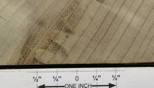 END GRAIN UPDATE and quartersawn side grain closeup from directly above. The side grain shot was taken just 'cause it is a perfectly quartersawn surface and shows how small the ray flakes are that accompany the very thin rays that are visible in the 2nd enlargement of the end grain update.