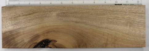 both sides of a sample plank of curly West Coast myrtle (aka California laurel) / Umbellularia californica --- HUGE enlargements are present. This piece came from Hearne Hardwood -> Eric Krum -> Mark Peet -> me (on loan from Mark)