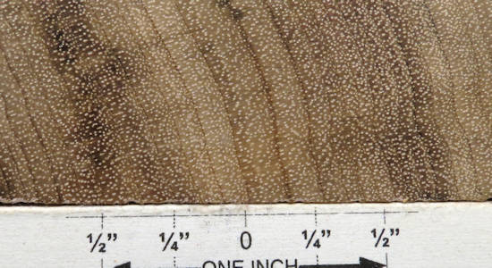 face grain closeup of the piece directly above, showing some nice little ray flakes (notice that the piece is almost quartersawn)