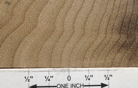 because this piece is almost perfectly quartersawn, the side grain, shown here, is nicely flat cut.