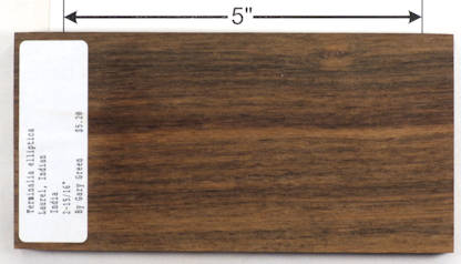 both sides of a sample plank of East Indian laurel / Terminalia tomentosa --- HUGE enlargements are present. This sample was loaned to me by David Clark whom I thank for this and other contributions to the site.