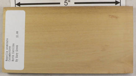 both sides of a sample plank listed as cucumbertree / Magnolia acuminata