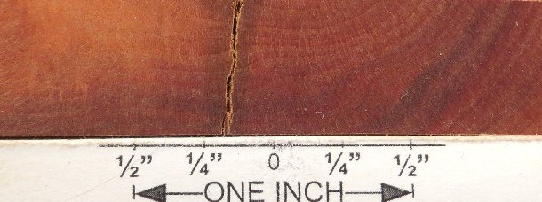 face and end grain of a sample plank donated to the site by Ira Matheny whom I thank for this and other contributions to the site.