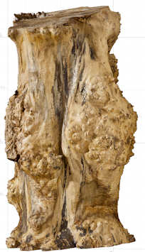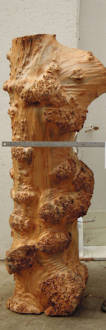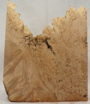 both sides of a sample plank of burled bigleaf maple / Acer macrophyllum --- HUGE enlargements are present. This sample was loaned to me by David Clark whom I thank for this and other contributions to the site.
