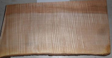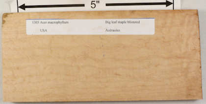both sides of a sample plank of curly bigleaf maple / Acer macrophyllum --- HUGE enlargements are present. This sample was loaned to me by Mark Peet whom I thank for this and other contributions to the site.