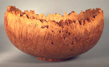 bowls by Bryan Nelson (NelsonWood). Bryan fine-polishes his bowls with 1200 or even higher grit sandpaper while they are spinning at high speed on the lathe and then finishes them there with a friction polish of his own devising, thus achieving a shine and color vibrancy that is beautiful to behold.