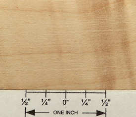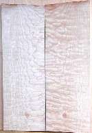 both sides of a sample plank of blistered bigleaf maple / Acer macrophyllum --- HUGE enlargements are present. This sample was loaned to me by David Clark whom I thank for this and other contributions to the site. The blister is so light as to be almost nonexistent.