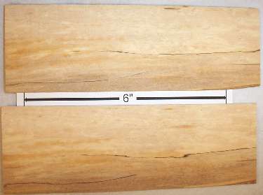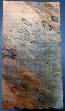 both sides of a sample plank of spalted silver maple / Acer saccharinum --- HUGE enlargements are present. This sample was loaned to me by David Clark whom I thank for this and other contributions to the site.