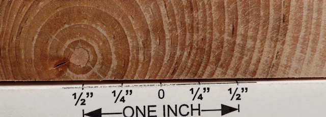 both sides of a sample plank of Sikta mountain ash / Sorbus sitchensis --- HUGE enlargements are present. This sample was loaned to me by David Clark whom I thank for this and other contributions to the site.