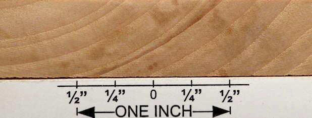 both sides of a sample plank of American mountain ash / Sorbus americana --- HUGE enlargements are present.