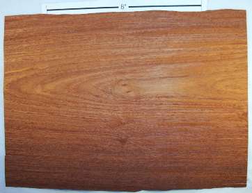 | narra / Pterocarpus indicus (syn. Pterocarpus vidalianus) often called New Guinea rosewood Pterocarpus indicus is also called red narra, yellow narra, and brown narra depending on the color, which has a huge range from light yellow to golden-brown to reddish-brown to a deep blood red. The characteristics are as described below but are subject to considerable variation, so much so that it took me a while to confirm that all of my samples really ARE the same species. Some of the variation is due to the deeper the red woods denser the wood. 5" x 5" flat cut, 5" x 5" quartersawn, 3/4" wide end grain, and a 1/4" x 1/4" end grain closeup. Semi ring porous starting out with large pores and dwindling down to small pores. Vasicentric parenchyma, winged aliform parenchyma, diffuse-in-aggregates parenchyma, occasional pore multiples 2 or 3 long and generally radial, and some confluence. Rays are very thin, closely spaced, and hard to see even at 10X. Growth ring boundaries are vague. NOTE: the burl from this wood uses a different name, amboyna, and has its own page on this site under that name. ![]() |