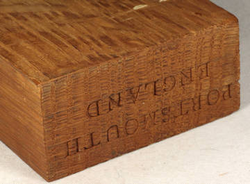 | English brown oak / Quercus petraea (syn. Quercus sessiliflora) and Quercus robur (syn. Quercus pedunculata) of the family Fagaceae. These are in the white oak group. 5" x 5" flat cut, 5" x 5" quartersawn, 1" x 1" end grain, and a 1/4" x 1/4" end grain closeup. Ring porous with a row of large earlywood pores 2 to 4 deep changing immediately to radial groups of very small pores surrounded by light colored tissue that make up fat dendritic groups or sometimes just fat radial strands. Faint diffuse-in-aggregates parenchyma in short tangential lines between rays is present but can sometimes be hard to see even at 10X. Rays are thick and discernible with the naked eye and growth ring boundaries are distinct. Since this is a white oak, there is tyloses in the pores. English Brown Oak is a form of European oak that (1) grows in England and Europe, and (2) is infected by a fungus that comes from a mushroom that grows on the tree and that changes the color of the wood, while the tree is still growing, to a rich beautiful honey brown. European oak is a very useful and attractive wood, but it pales in comparison, both literally and figuratively, to the wood once the fungus converts it to English brown oak. ![]() |
