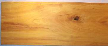 more thins from a different vendor. The color is accurate but these are rough sanded and the yellow brightens up considerably with a good sanding. These are from the vendor whose pictures below show an unrealistically BRIGHT yellow, and these samples are from the 3rd lot pictured below A bunch of pictures of an excellent plank that shows osage orange very nicely. This plank is 3 feet long, 8" wide and 3/4 inches thick, for a nominal size of 2BF and cost $10, or $5/BF which is a very good price (unfortunately the shipping more than doubled the total, but that's life). The color in all these pictures is very accurate but the spotlights brightened up the end areas way too much.
